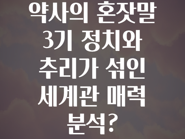 💬 여러분도 “약사의 혼잣말 3기” 속 정치와 추리가 어우러진 세계관을 감상하시고 느꼈던 흥미로운 점, 궁금증, 추천 포인트 공유해 주세요! 함께 이야기 나누며 더 깊이 빠져들 수 있길 기대합니다. 😄📖✨