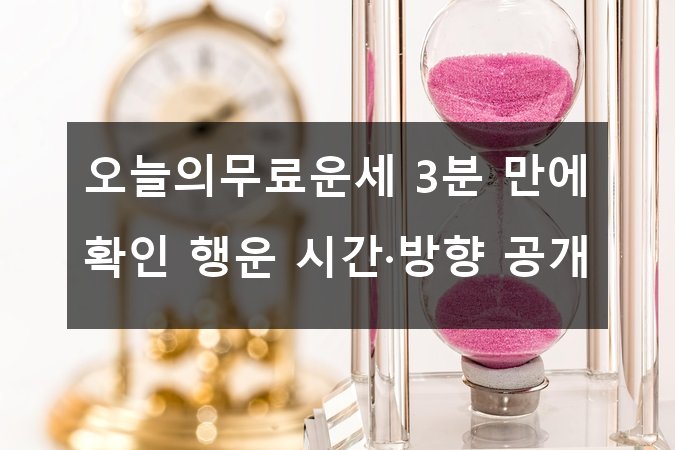 안녕하세요! 여러분, 혹시 아침에 일어나서 ‘오늘 내 운세는 어떨까?’ 궁금했던 적 있으신가요? 🤔 바쁜 일상 속에서 잠깐만 투자해도 나에게 딱 맞는 행운의 시간과 방향을 알 수 있다면 얼마나 좋을까요? 오늘은 여러분이 3분 만에 쉽게 확인할 수 있는 무료 운세와 함께, 하루를 더욱 빛나게 해줄 행운의 시간과 방향까지 쏙쏙 알려드릴게요! 🚀🌟