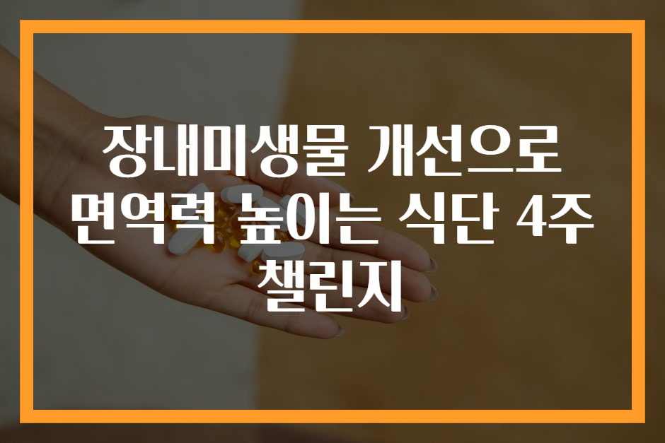 장내미생물, 면역력, 건강식단, 4주챌린지, 발효식품, 프리바이오틱스, 식이섬유, 식단개선, 면역강화, 균형잡힌식사, 장건강, 유익균, 자연식, 요거트, 김치, 된장, 치아시드, 해조류, 정신건강, 건강생활, 영양관리, 건강한라이프스타일, 건강자기관리, 면역강화식품, 변비해소, 해독식단, 면역력강화법, 장내미생물군, 채소과일, 영양균형, 내몸의변화