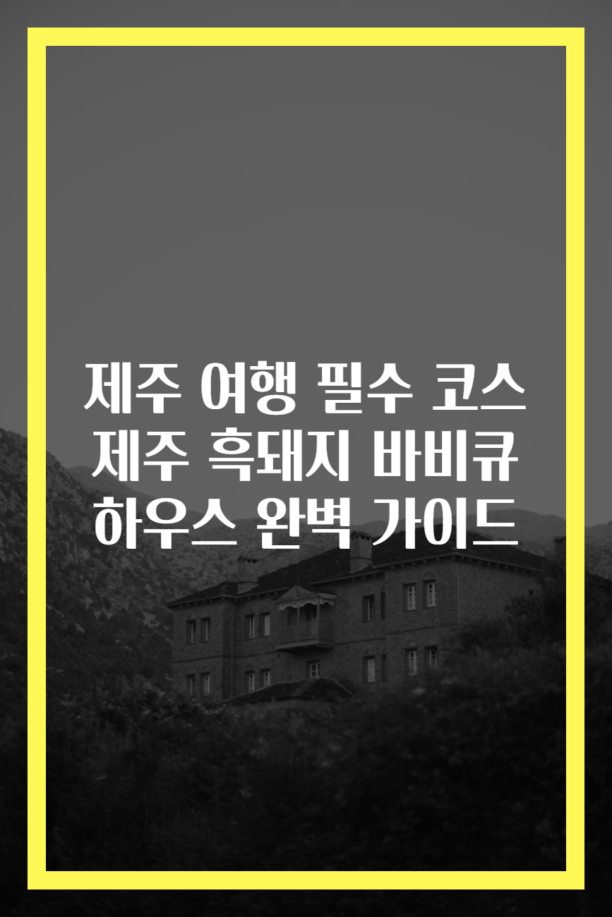 메타 설명: 제주 여행 필수 코스인 제주 흑돼지 바비큐 하우스에 대해 자세히 알아보고, 최고의 바비큐를 즐기는 방법을 소개합니다. 제주 여행의 핵심 경험을 놓치지 마세요!