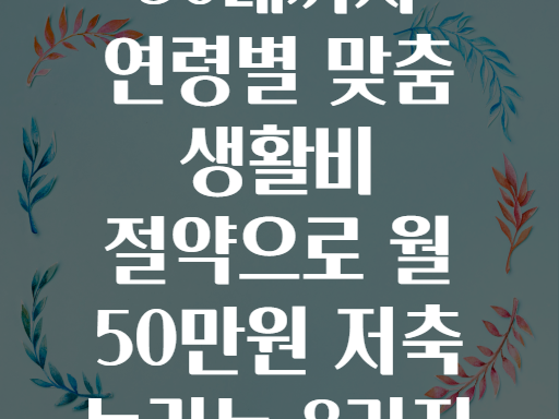 💬 “생활비 절약, 어렵지 않아요! 연령에 맞는 전략으로 똑똑하게 관리하면 당신도 월 50만원 저축, 꿈이 아닙니다!”