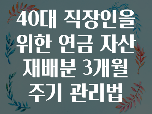 40대 직장인을 위한 연금 자산 재배분 3개월 주기 관리법 🌟💰